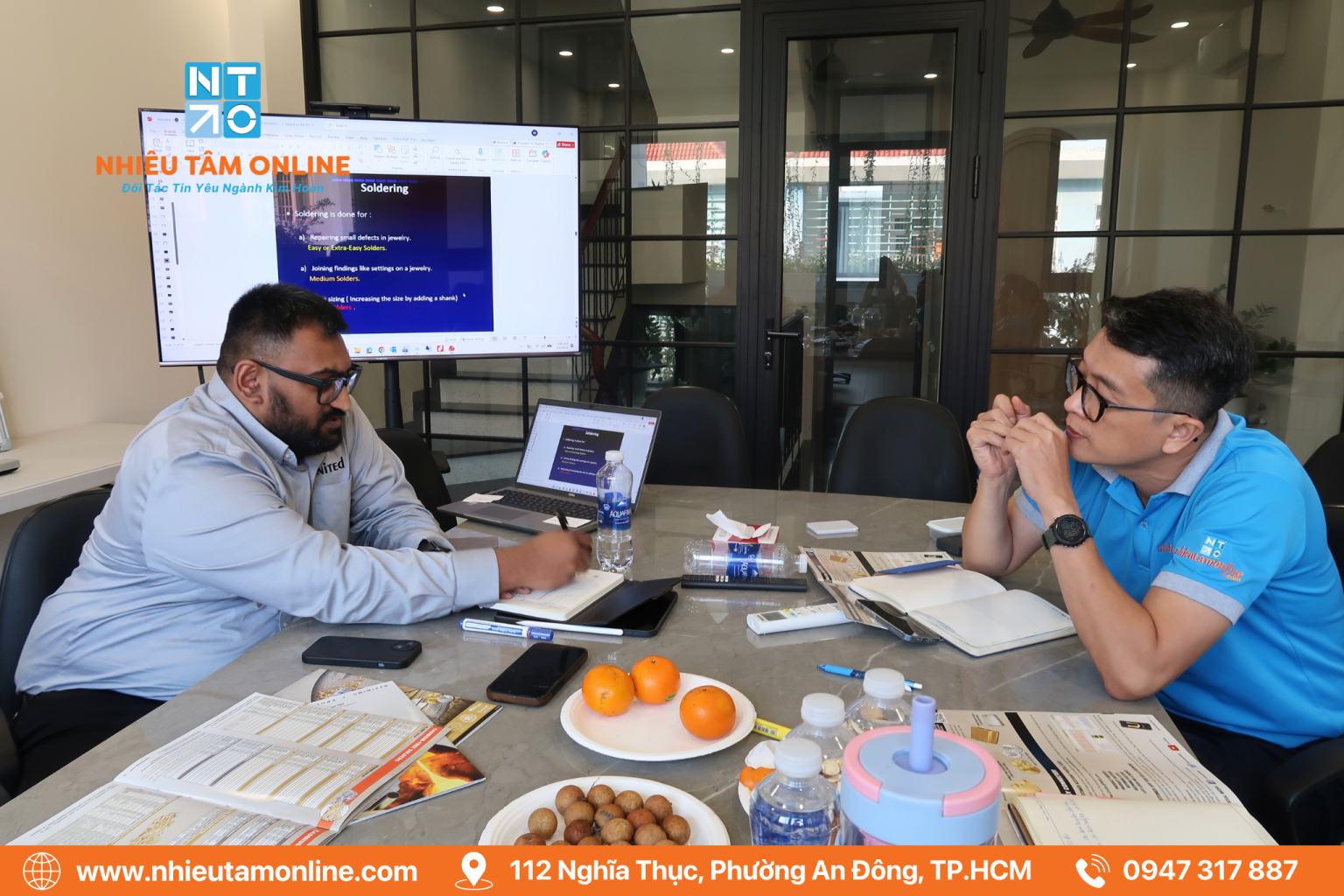 Nhằm nâng cao chất lượng tư vấn và hỗ trợ khách hàng trong ngành kim hoàn, đặc biệt kỹ thuật đúc nữ trang, Nhiêu Tâm Online đã tổ chức buổi thảo luận chuyên sâu cùng Đại diện kỹ thuật khu vực Đông bán cầu từ phía đối tác quốc tế – Hội United.