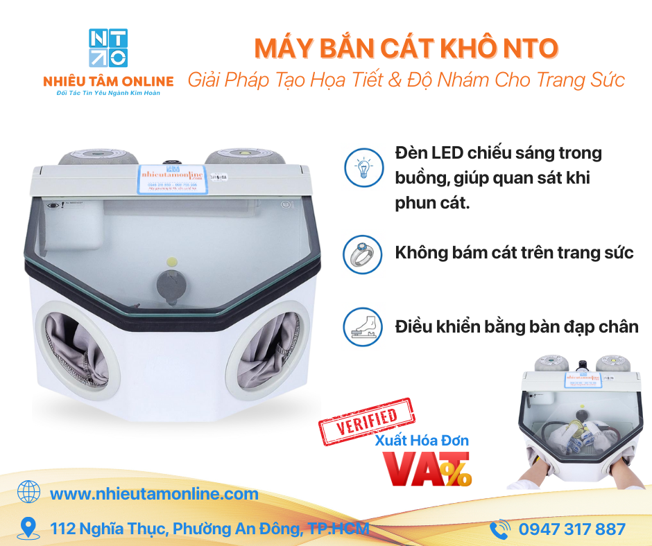 Máy dùng cát để phun lên bề mặt vàng bạc, tạo họa tiết cát cho nữ trang.