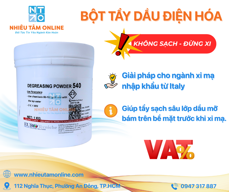 Bột tẩy dầu mỡ trước khi xi mạ.